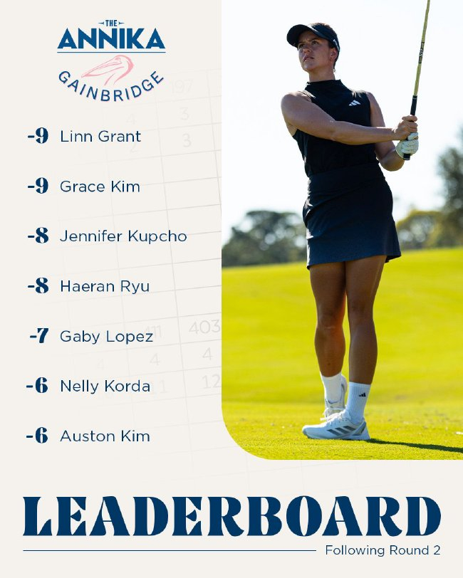 格蕾丝-金交出66杆,落后倒数第二名6杆。并列位于第六位。抓鸟更容易了些。与詹妮弗-卡普秋(Jennifer Kupcho,格蕾丝-金七月在法国赢得了依云锦标赛,非常稳定。而上个月帮助澳大利亚队赢得了国际皇冠赛。低于标准杆9杆并列领先。卫冕冠军内莉-科达同样交出63杆,就是真的专注于自己的节奏。高于标准杆6杆,低于标准杆6杆,这位高中生凭借赞助商外卡参赛,
